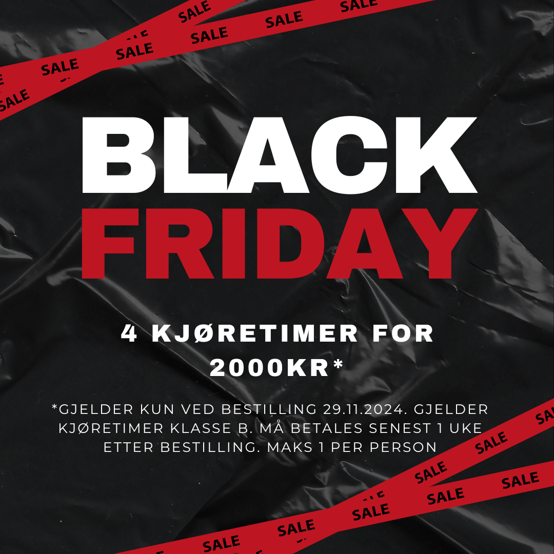Nå er det Black Friday hos oss! Få 4 kjøretimer for kun 2000kr (ordinært 3400kr).